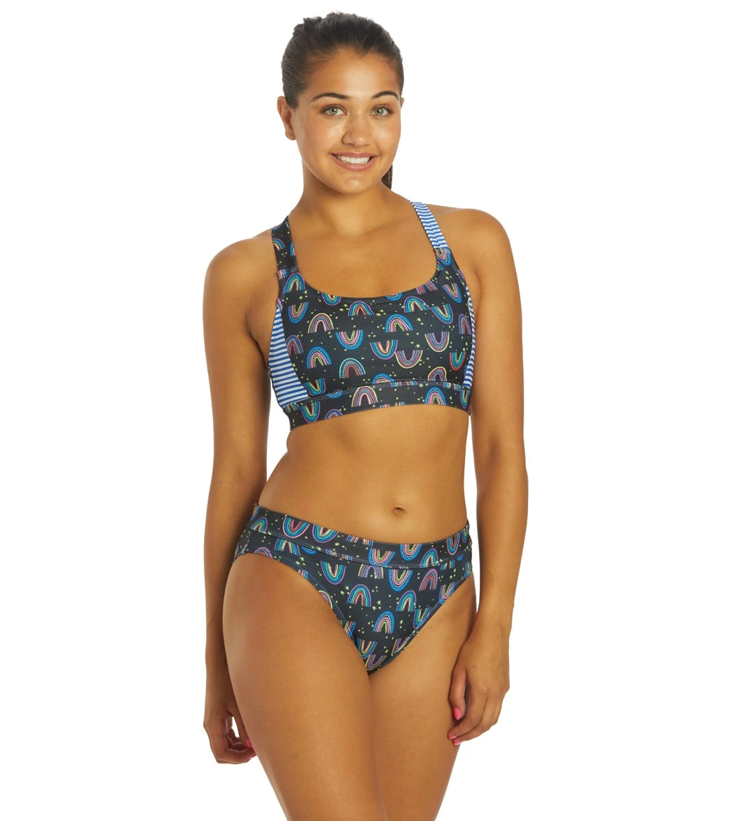 The Dolfin Uglies Women’s Asymmetrical Two Piece Work Out Swimsuit is made from fabric designed with comfort and fit in mind. Chlorine resistant, Shape and color retention, and UPF 50+ Protection from the sun. Includes top and bottom piece.
