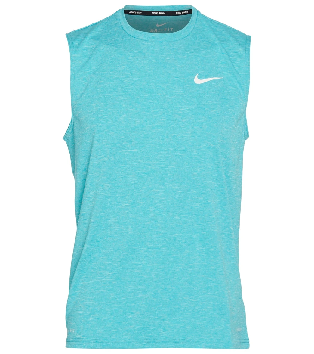 Stay dry and comfortable in the Nike Men’s Heather Sleeveless Hydroguard, a lightweight rashguard boasting UPF 40+ sun protection.