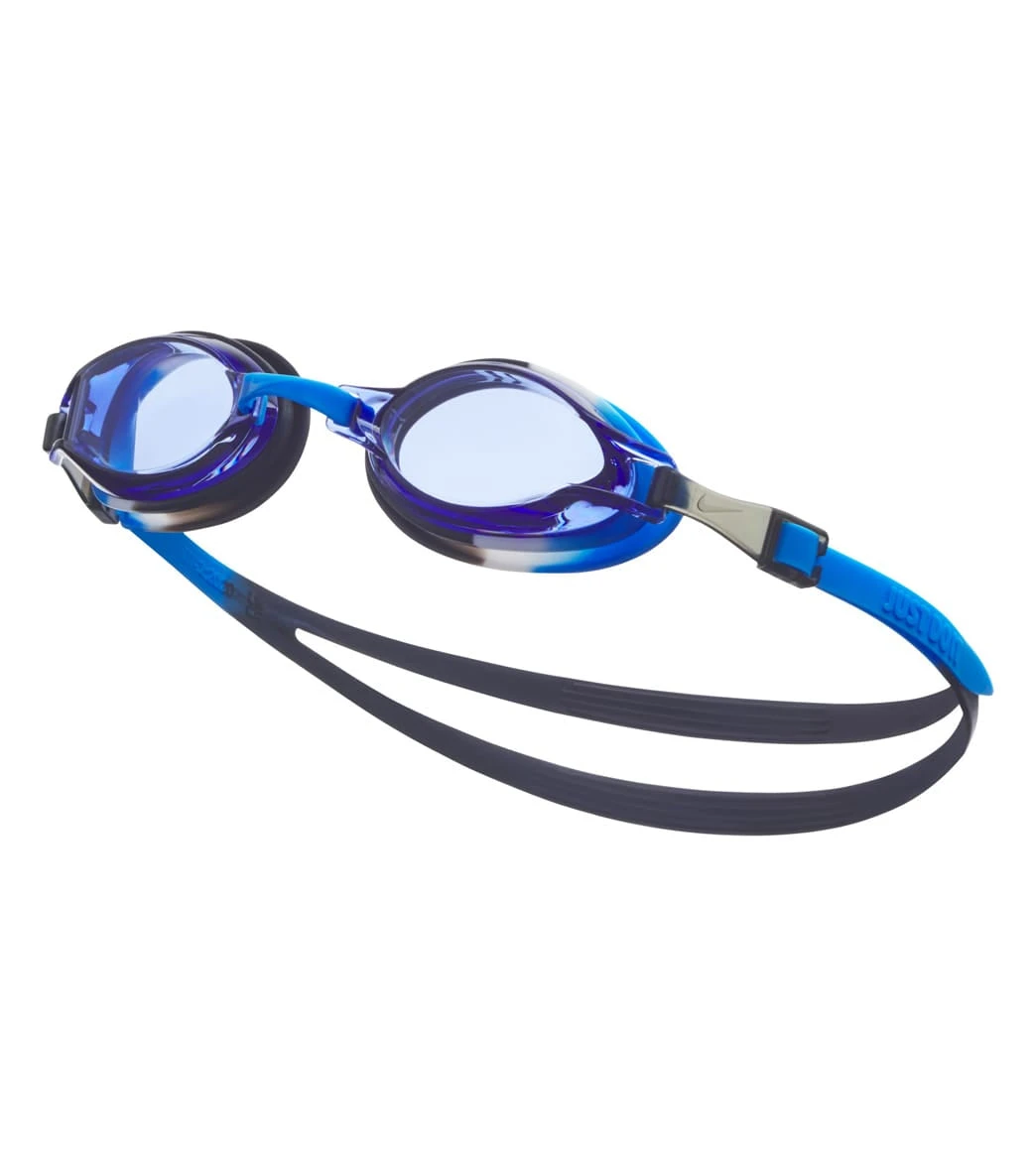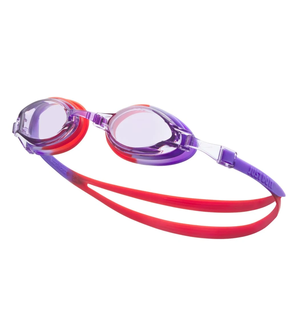 Stay ahead of the competition in the Nike Youth Chrome Goggle, featuring a curved lens design for enhanced peripheral vision in the pool.