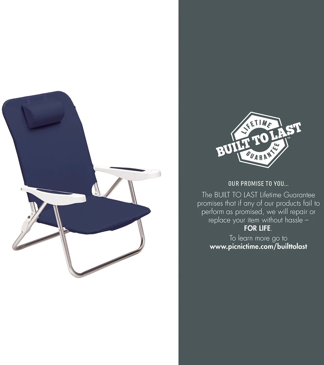 The lightweight, portable Picnic Time Monaco Beach Chair provides comfortable seating on the go. Sit back and relax, this beach chair features six chair back positions and an integrated cup holder in the armrest.