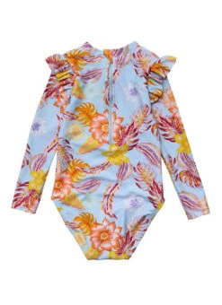 Snapper Rock Girls’ Boho Tropical Frill Long Sleeve One Piece Swimsuit (Baby, Toddler, Little Kid)