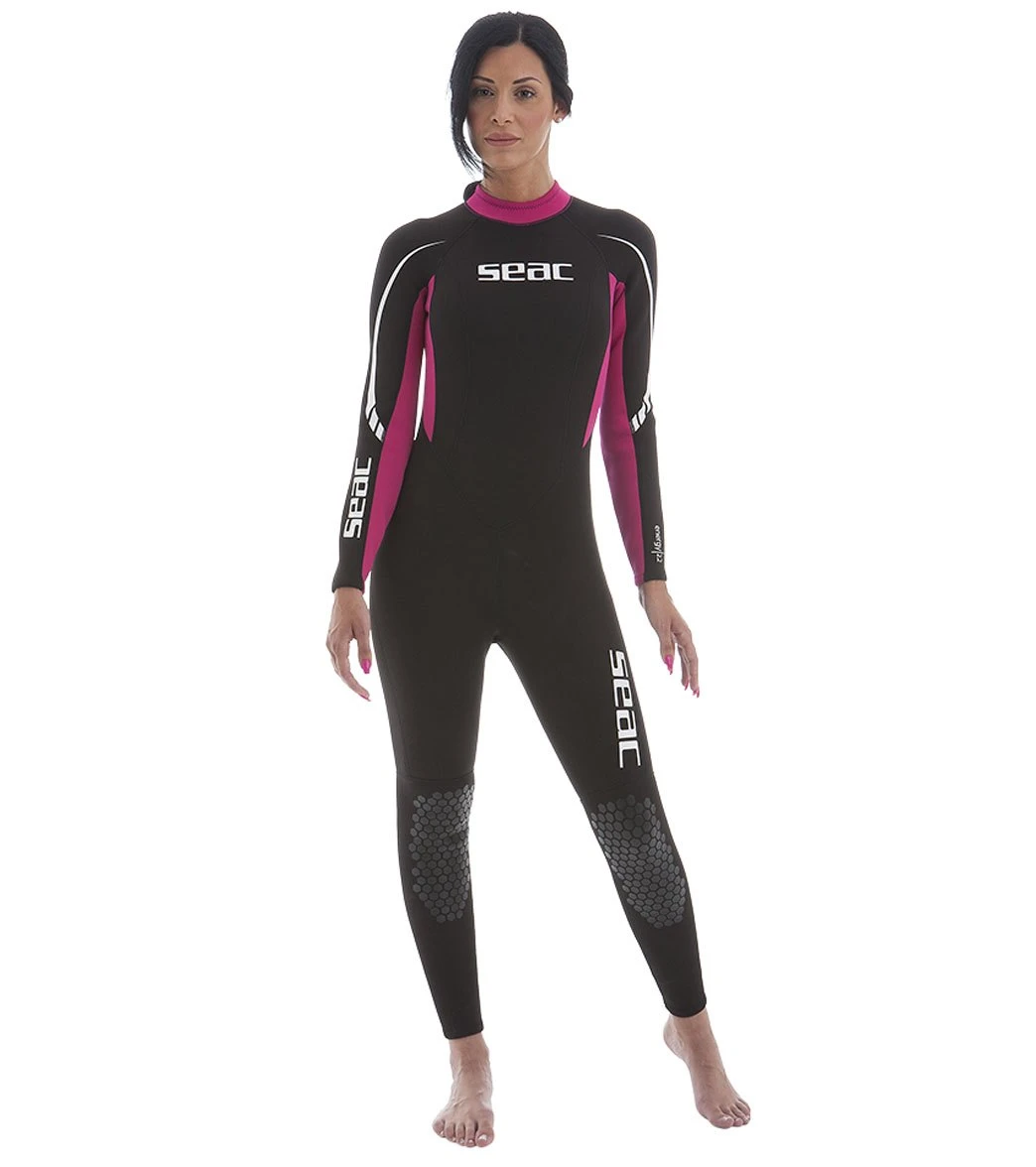 The Seac USA Women’s 2.2mm Relax Full Wetsuit is perfect for surfing and diving in warmer waters.