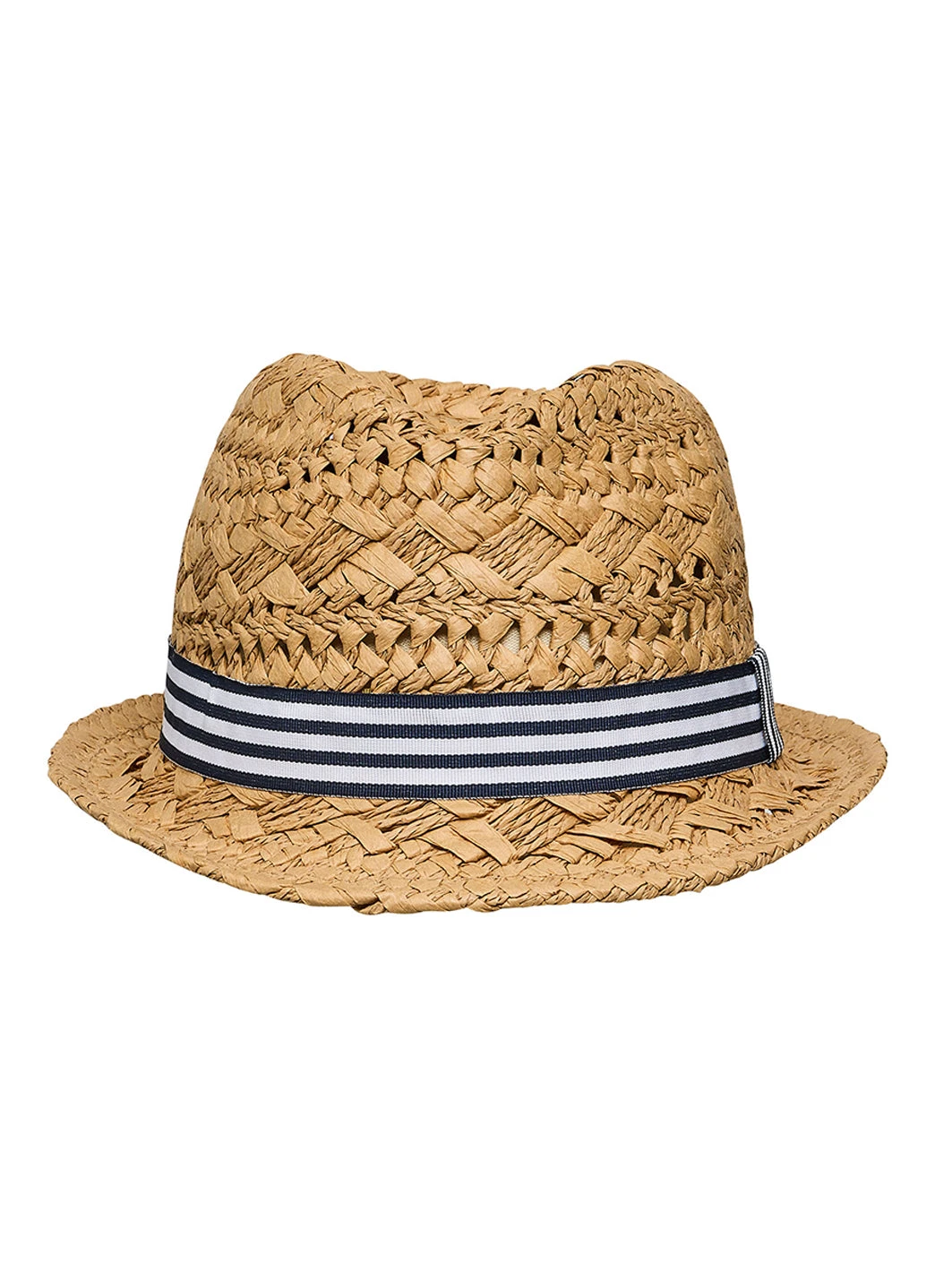 Stay cool with this paper straw hat faeturing a navy and white stripe band