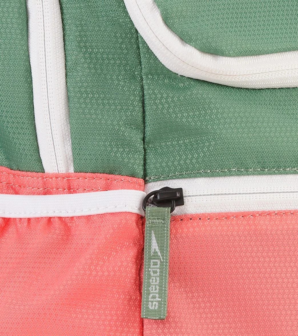 - Hidden front ventilated gear pocket for wet suits, caps, and goggles