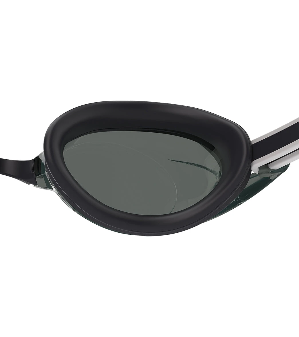 Enhance your swim sessions with the Speedo Vanquisher 3.0 Goggle, designed for greater vertical and peripheral vision through Ocular 360 lenses. Its Wider, Flatter strap, cushioned gaskets, and slide-and-lock nose bridge deliver all-day comfort, while anti-fog and UV protection keep you focused on every stroke.