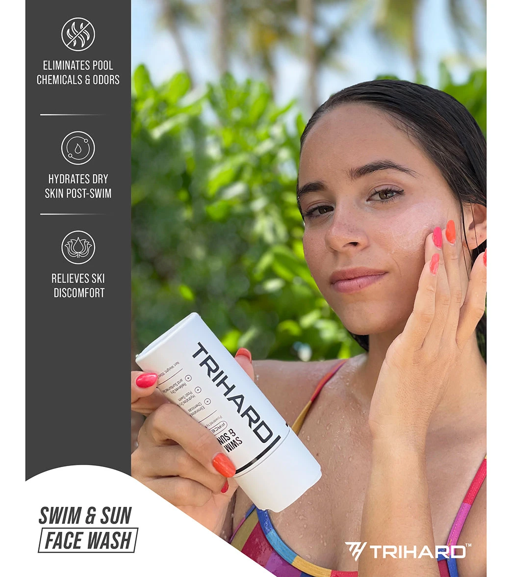 The Swim & Sun Face Wash 5.1fl oz effectively removes pool chemicals and salt water while hydrating skin post-swim. It also gently calms and relieves any discomfort experienced after being exposed to UV rays.