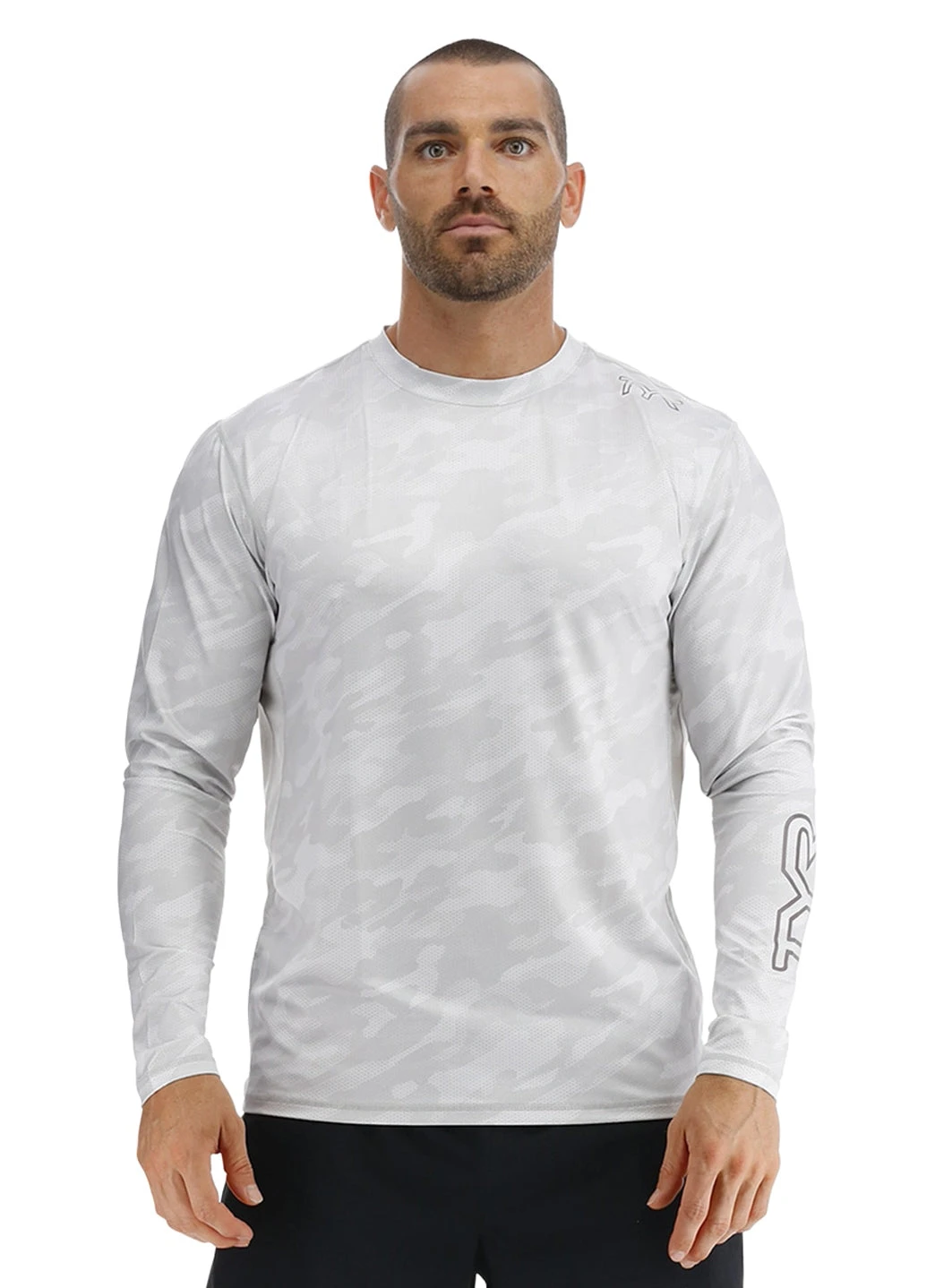 Stay ready for action in the TYR Men’s Camohex SunDefense Long Sleeve Vented UPF 50+ Swim Shirt, featuring sun protection and lightweight flexibility for long days outdoors.
